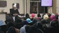 An educational class with the Head of the Ahmadiyya Muslim Community, Hazrat Mirza Masroor Ahmad (may Allah be his Helper) and Lajna members of the Waqfe Nau scheme.
